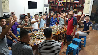 A few photos were taken for good measure, and a woman joined us, and then the boss of the place. These two did share in the beer so at least I had someone else to gan bei with. Li Kun had been pinging me on WeChat to go and drink tea, and I'd kept responding that I'd hopefully have time after the meal. However, it was gone half eight before we finished and too late for tea. Instead, I took the kids to A Ni's for some juice. Lin Hong came to take the kids to the guangchang and A Ni grabbed me to go upstairs where there were at least half a dozen ladies in various states of intoxication. I just wasn't in the mood at all but performed a few gan beis before excusing myself using the kids' shower requirements when they got back as justification. I left to the order of coming back in a few minutes but I didn't want to and Tan certainly didn't want me to either, and got a reasonably earlyish night.